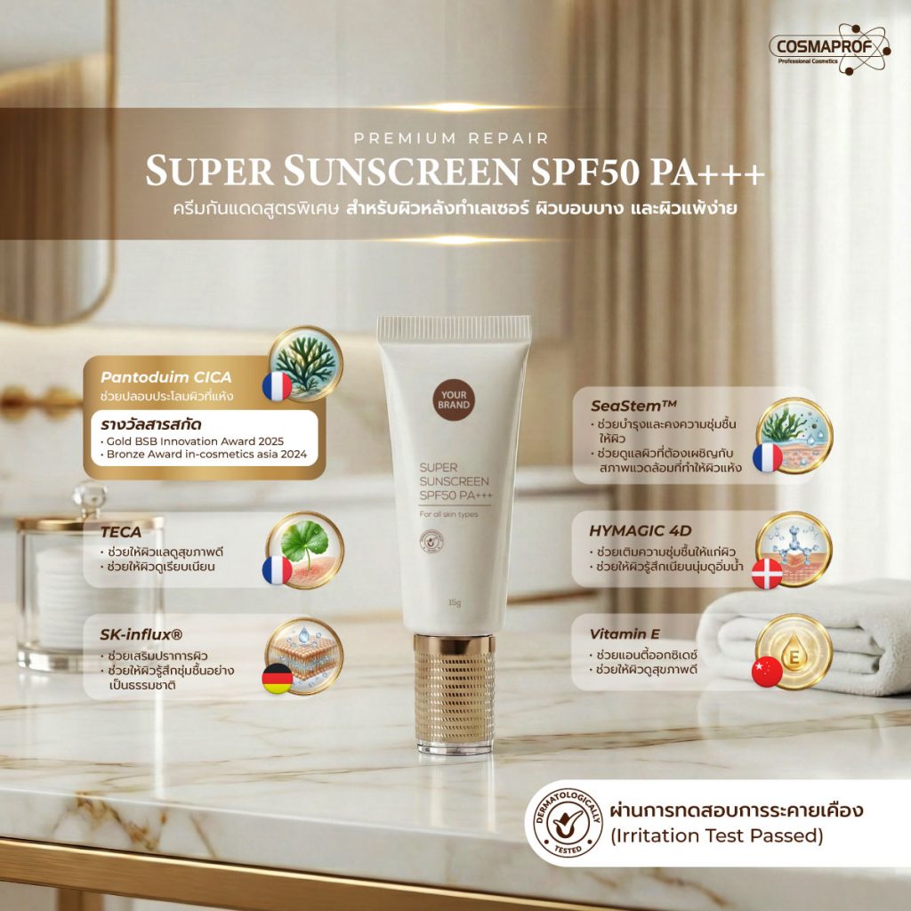เลือกสูตรครีมกันแดดสำเร็จรูปหรือให้เราพัฒนาสูตรเฉพาะแบรนด์คุณ